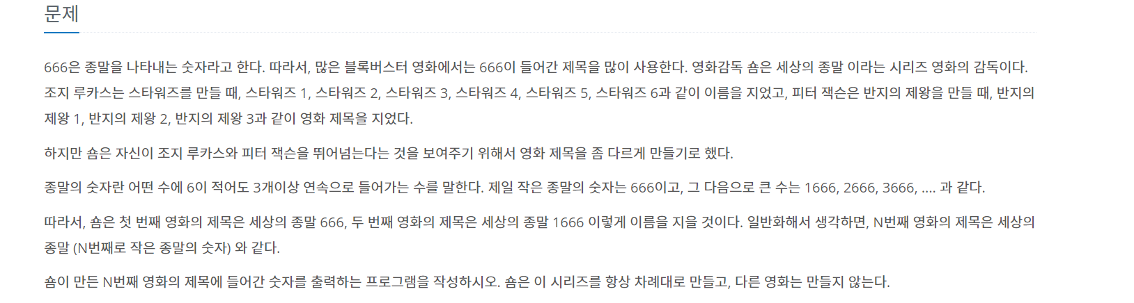 문제 링크입니다. https://www.acmicpc.net/problem/1436