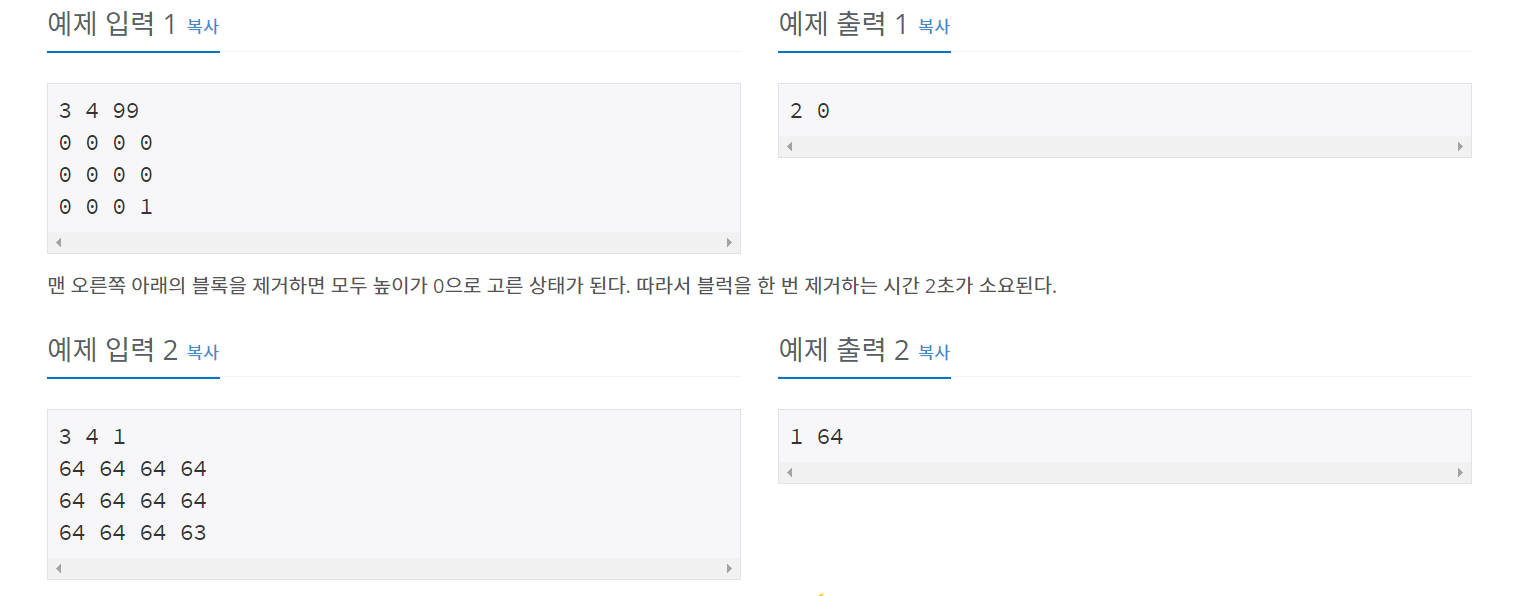 문제 링크입니다. https://www.acmicpc.net/problem/18111