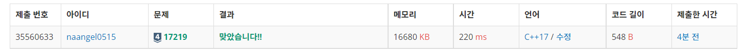 | 백준 2644 - 촌수계산(C++) (0) | 2021.11.18 |