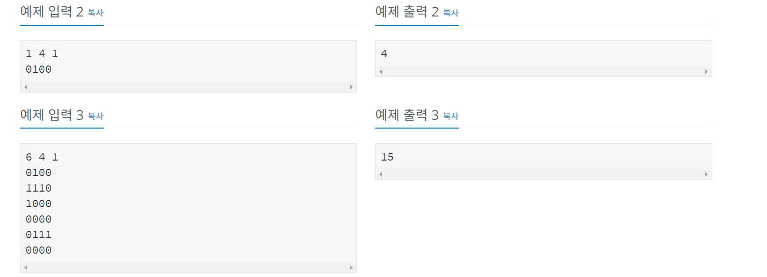 첫째 줄에 N(1 ≤ N ≤ 1,000), M(1 ≤ M ≤ 1,000), K(1 ≤ K ≤ 10)이 주어진다. 다음 N개의 줄에 M개의 숫자로 맵이 주어진다. (1, 1)과 (N, M)은 항상 0이라고 가정하자.