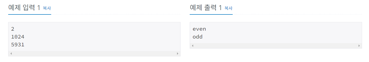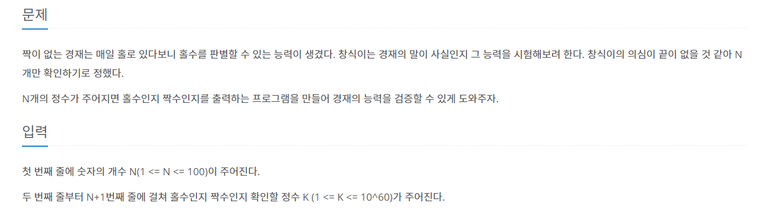 5988번: 홀수일까 짝수일까
