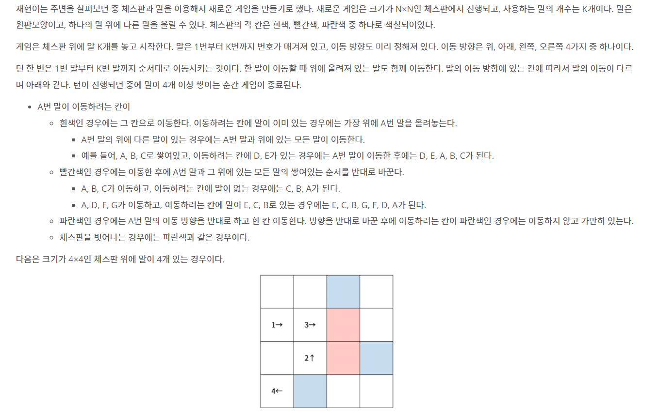 백준 17837 - 새로운 게임2(C++) 본문