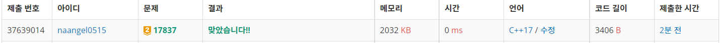 문제 링크입니다. https://www.acmicpc.net/problem/17837