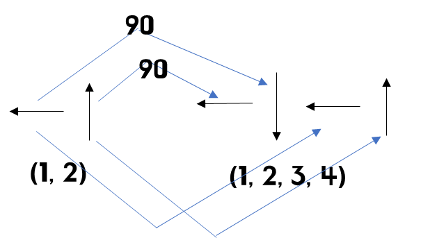 1세대에서 2세대로 넘어갈 경우, 1세대의 움직임에서 반시계 방향으로 90도 움직인 방향으로 먼저 움직인 뒤, 1세대의 방향으로 움직입니다.