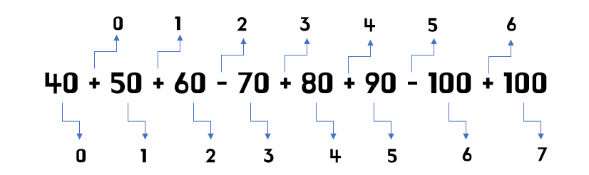 '-' 연산의 시작점과 끝점을 저장해준뒤 해당 수열에서의 합을 저장해줍니다.