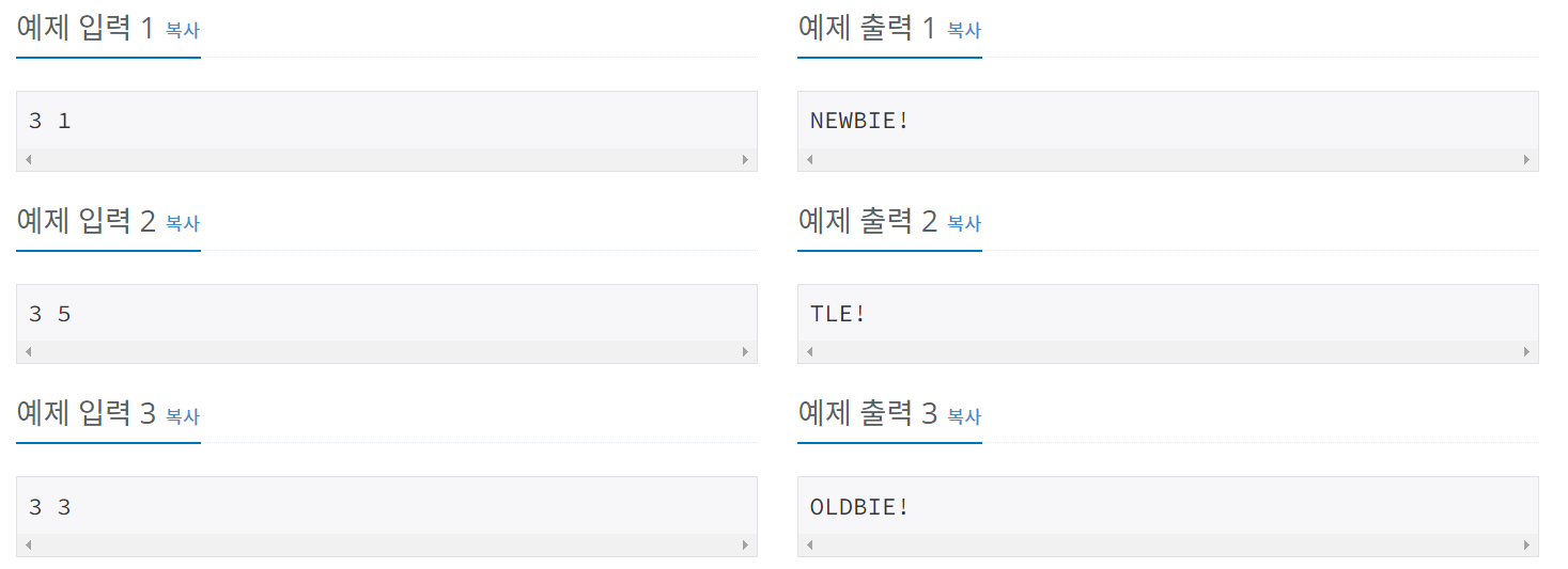 if (M == 1 || M == 2) cout << "NEWBIE!";