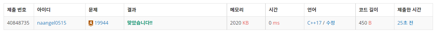 문제 링크입니다. https://www.acmicpc.net/problem/19944