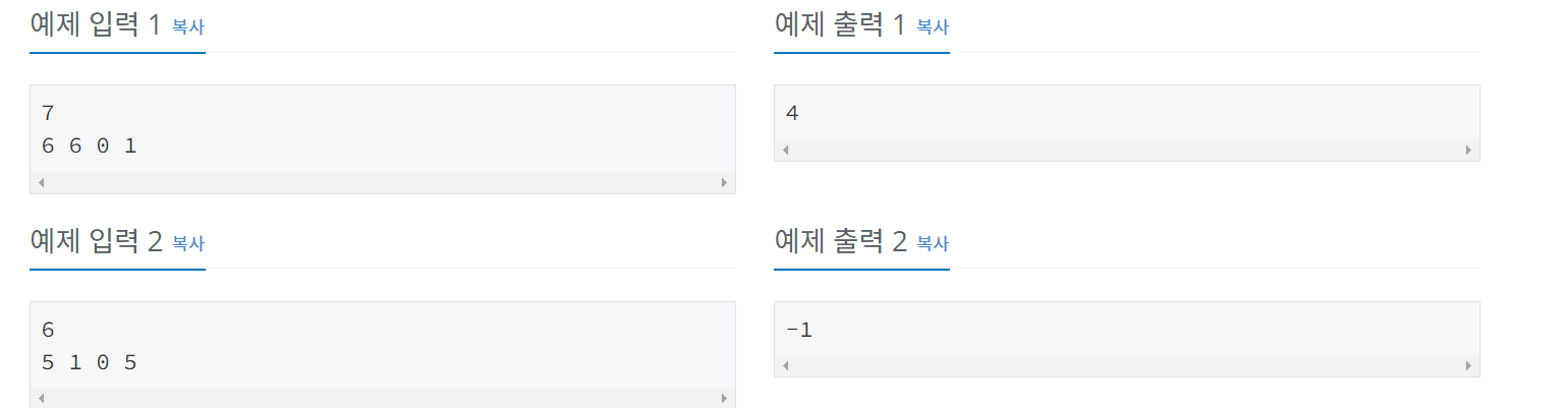 해당 이동 방향으로 움직일 수 없으면 -1를 이동할 수 있으면 이동한 횟수를 출력하는 문제입니다.