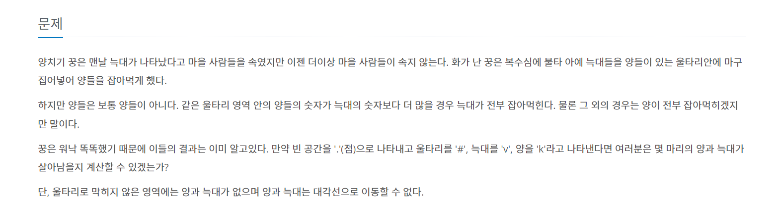 백준 3187 - 양치기 꿍(C++) 본문