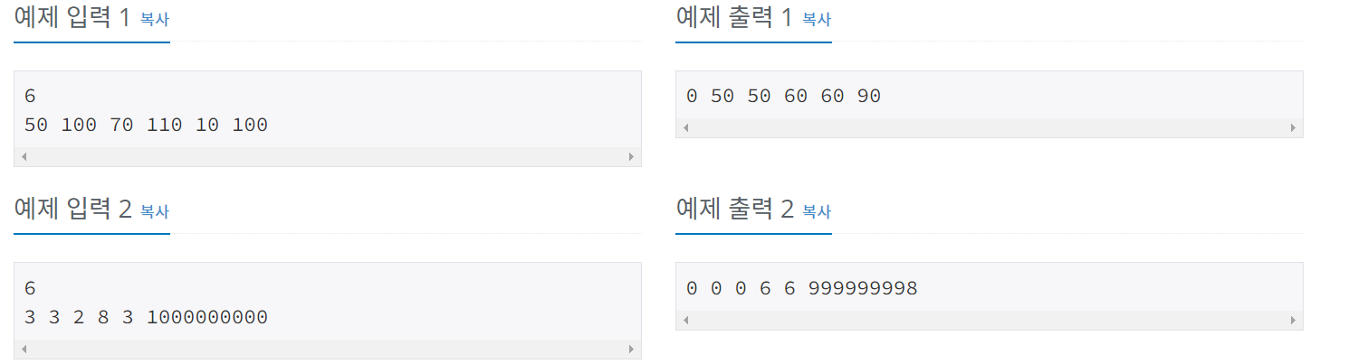 각 \(A_i\)가 추가된 직후의 문제의 답 \(N\)개를 공백으로 구분하여 출력한다.