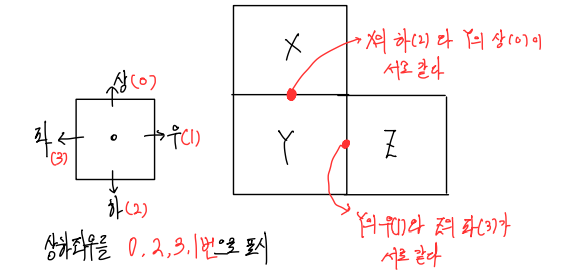 한 구역에서 구멍을 가질 수 있는 방법은 4가지 입니다. -> 상하좌우