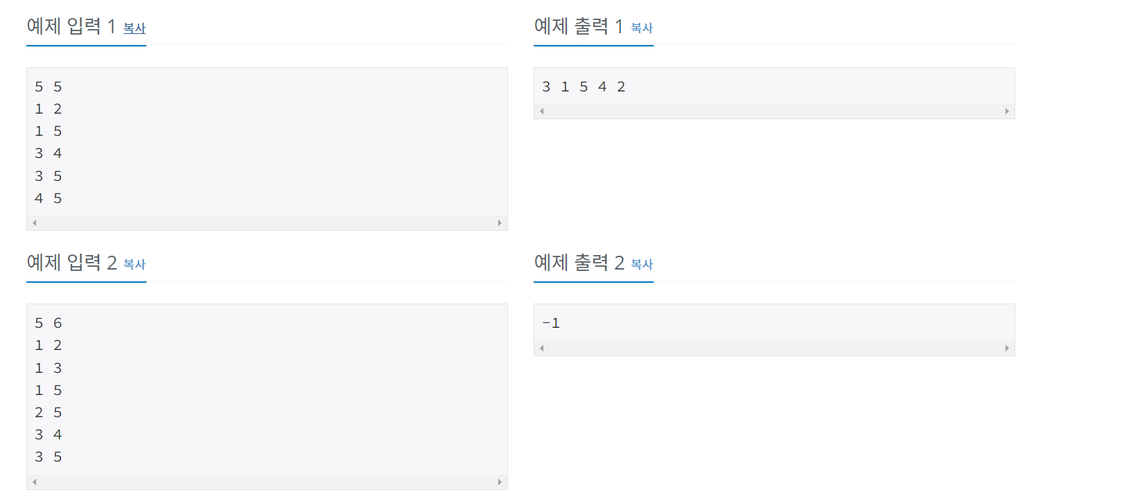 하지만 2번 학생이 5를 가지게 된다면 (2, 3)의 명단도 있어야하지만 없는 것을 보아 3번 학생은 무조건 5를 가져야합니다.