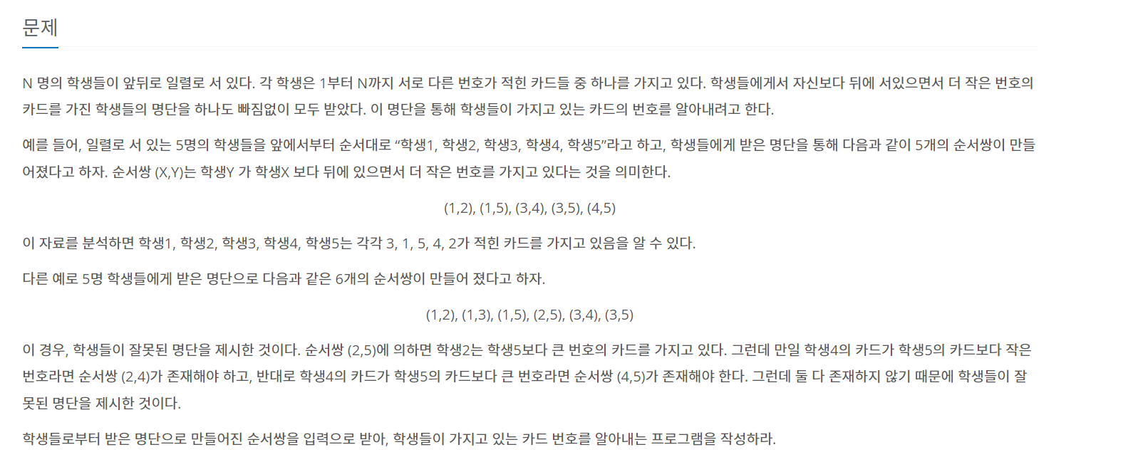 이를 통해 학생들이 가지고 있는 카드를 순서대로 알아내는 문제입니다.