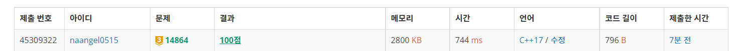 문제 링크입니다. https://www.acmicpc.net/problem/14864