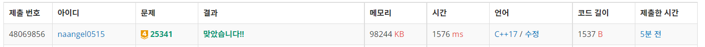 문제 링크입니다. https://www.acmicpc.net/problem/25341