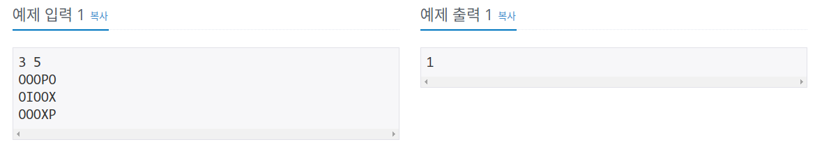 'I'에서 시작해서 4방향 탐색으로 'P'를 찾는 문제였습니다.