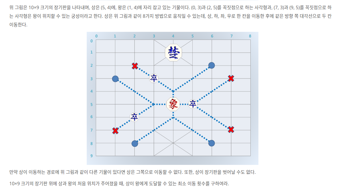 상이 이동할 수 있는 8방향을 통해 계속 이동하면서 왕이 있는 곳까지 움직이면 되는 문제입니다.