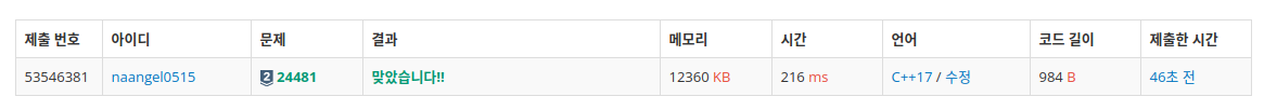문제 링크입니다. https://www.acmicpc.net/problem/24481
