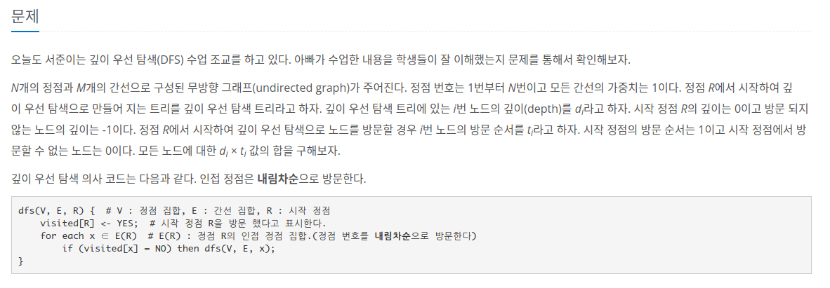 백준 24483 - 알고리즘 수업 - 깊이 우선 탐색 5(C++)