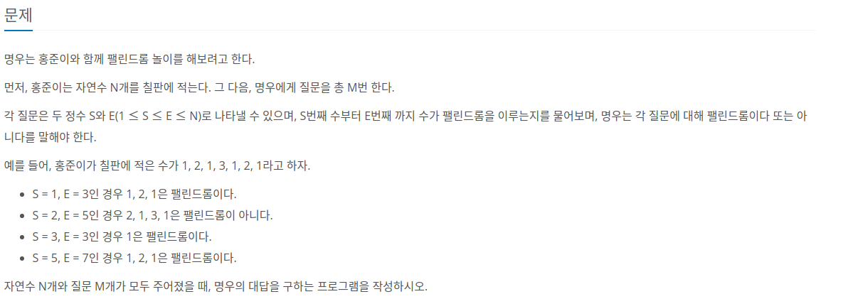문제 링크입니다. https://www.acmicpc.net/problem/10942