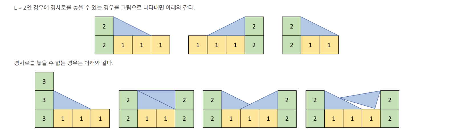 길이 주어졌을때 다음과 같은 방식으로 경사로가 만들어집니다.