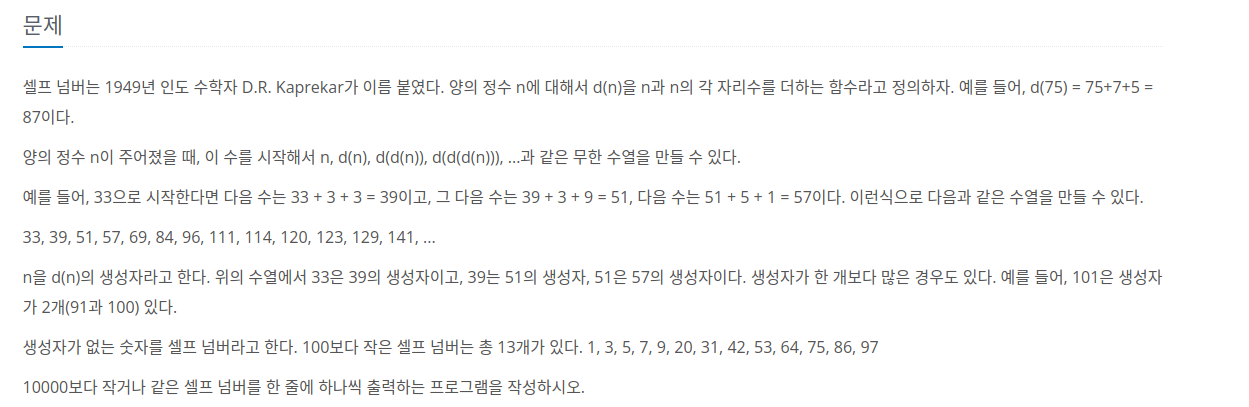 문제 링크입니다. https://www.acmicpc.net/problem/4673