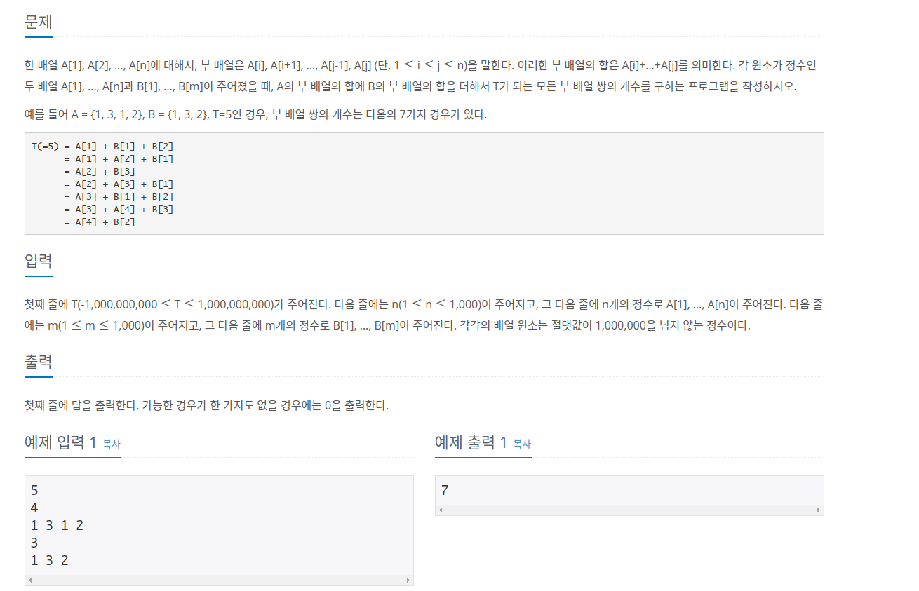 문제 링크입니다. https://www.acmicpc.net/problem/2143