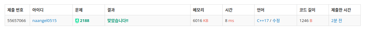 문제 링크입니다. https://www.acmicpc.net/problem/2188