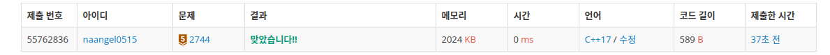 문제 링크입니다. https://www.acmicpc.net/problem/2744