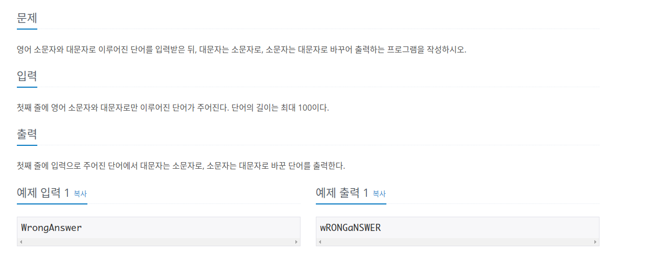 백준 2744 - 대소문자 바꾸기(C++) 본문
