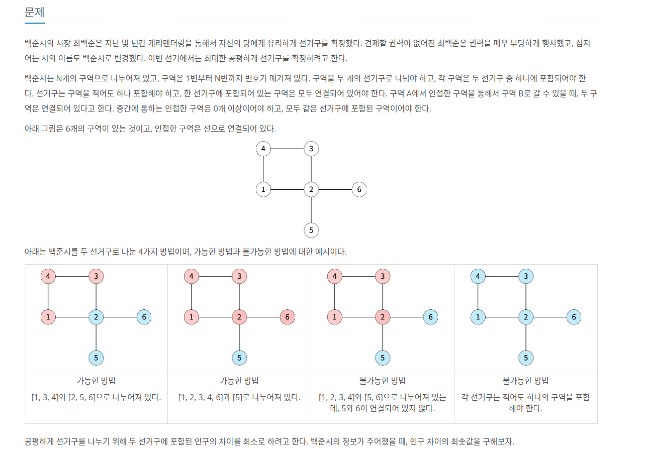 문제 링크입니다. https://www.acmicpc.net/problem/17471