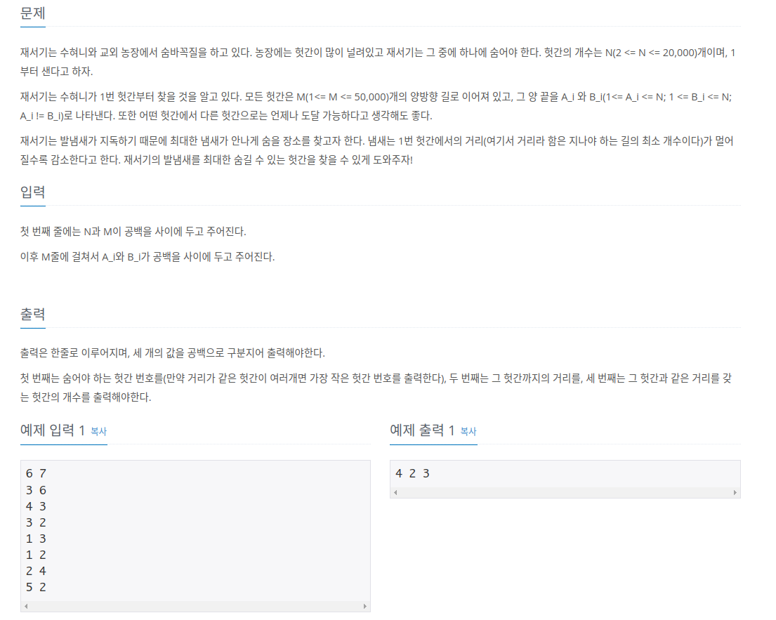 백준 6118 - 숨바꼭질(C++) 본문