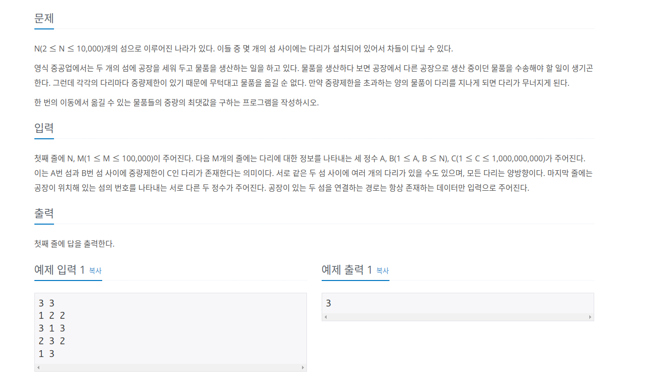 문제 링크입니다. https://www.acmicpc.net/problem/1939