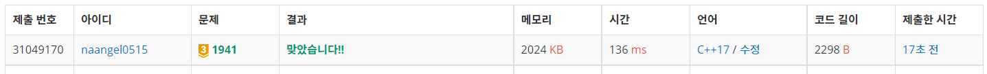 문제 링크입니다 https://www.acmicpc.net/problem/1941