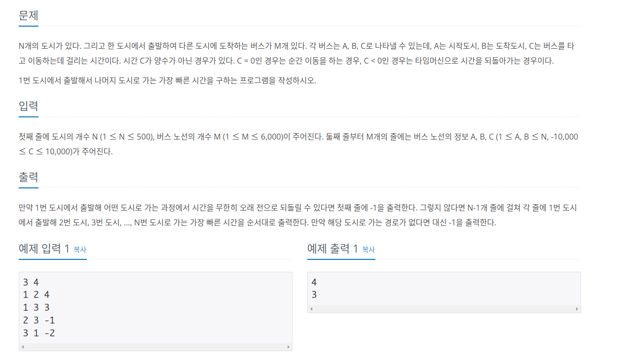 밸만 포드 알고리즘을 이용해 푸는 문제입니다.