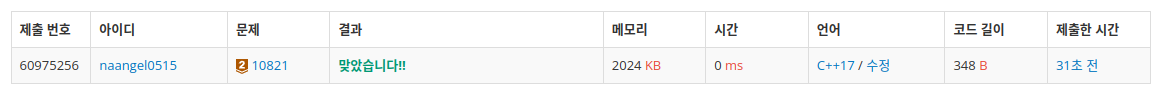 문제 링크입니다. https://www.acmicpc.net/problem/10821