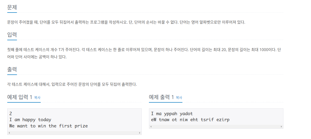 문제 링크입니다. https://www.acmicpc.net/problem/9093