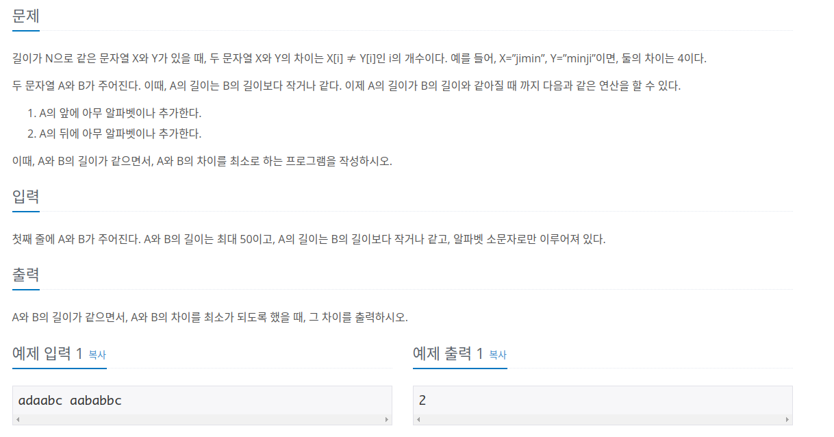 문제 링크입니다. https://www.acmicpc.net/problem/1120