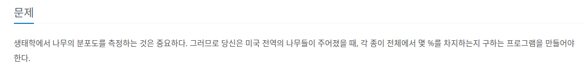 마지막에 X번째 종의 개수와 전체 개수의 백분율을 구해 출력해주면 됩니다.
