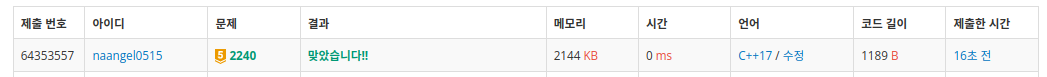 | 백준 10164 - 격자상의 경로(C++) (0) | 2023.07.27 |