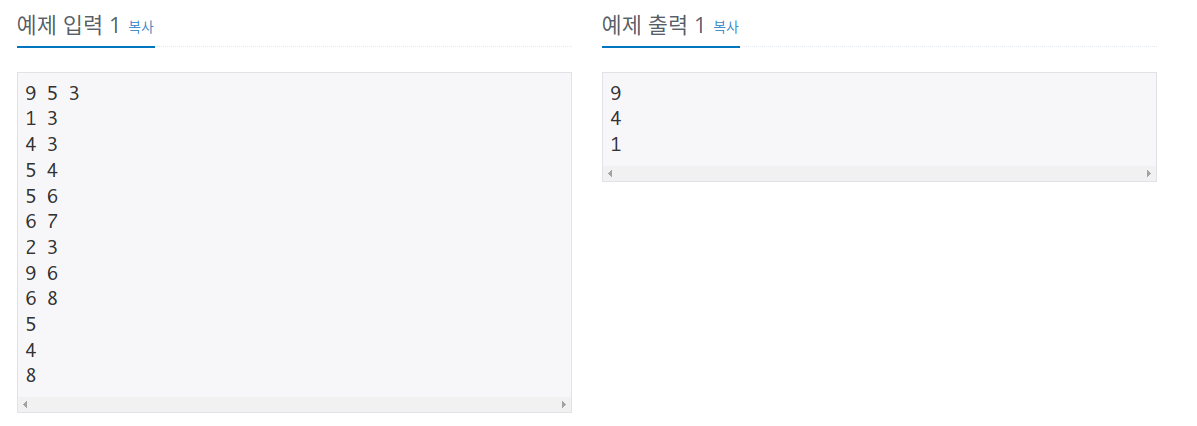 트리의 정점의 수 N과 루트의 번호 R, 쿼리의 수 Q가 주어진다. (2 ≤ N ≤ 105, 1 ≤ R ≤ N, 1 ≤ Q ≤ 105) 이어 N-1줄에 걸쳐, U V의 형태로 트리에 속한 간선의 정보가 주어진다. (1 ≤ U, V ≤ N, U ≠ V)