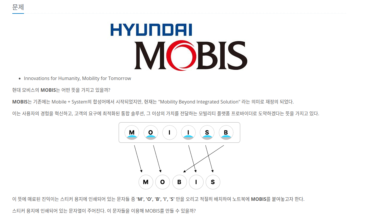 주어진 단어로 'MOBIS' 단어를 만들 수 있는지 물어보는 문제입니다.