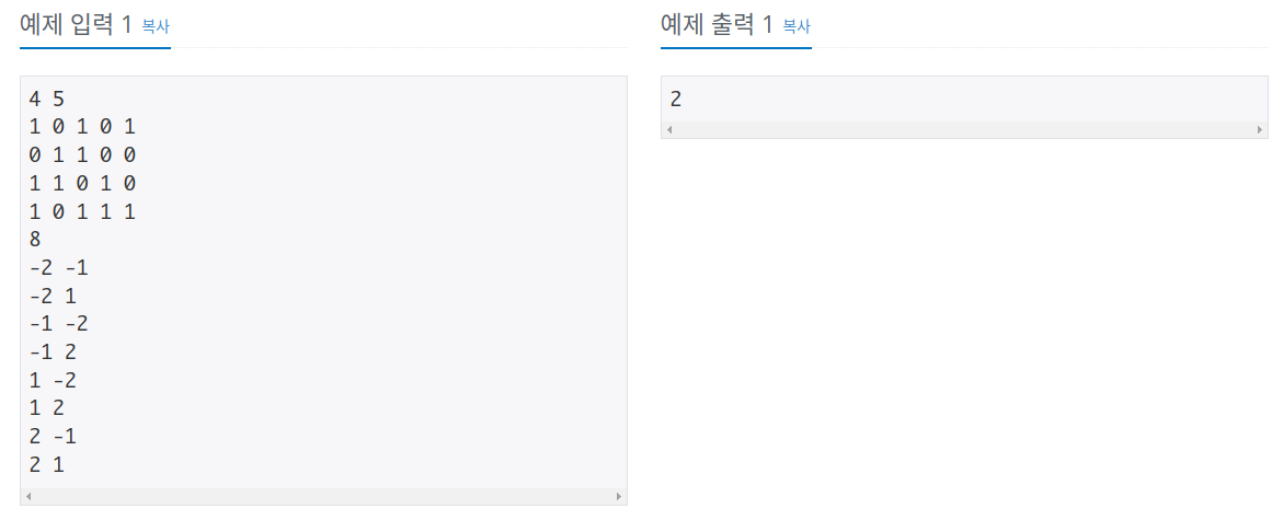 첫 번째 줄에는 보도블록의 세로, 가로 R, C(1 ≤ R, C ≤ 1,000)크기가 주어진다. 다음 R개의 줄에는 C개의 문자로 이루어진 보도블록의 초기 상태가 주어진다. (가로 블록은 0로 표시되고, 세로 블록