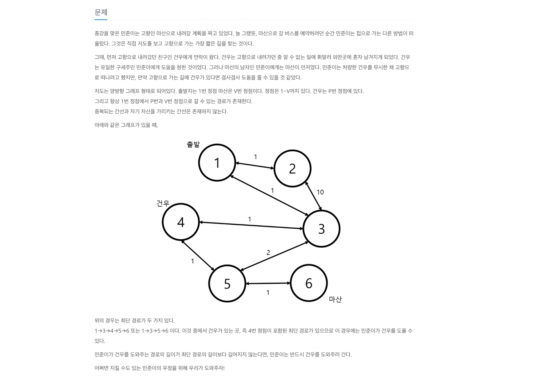 1->N 점까지 가는 최단 거리가 1->민준->N 점으로 가는 최단거리와 같은 것인지를 알아야 했습니다.