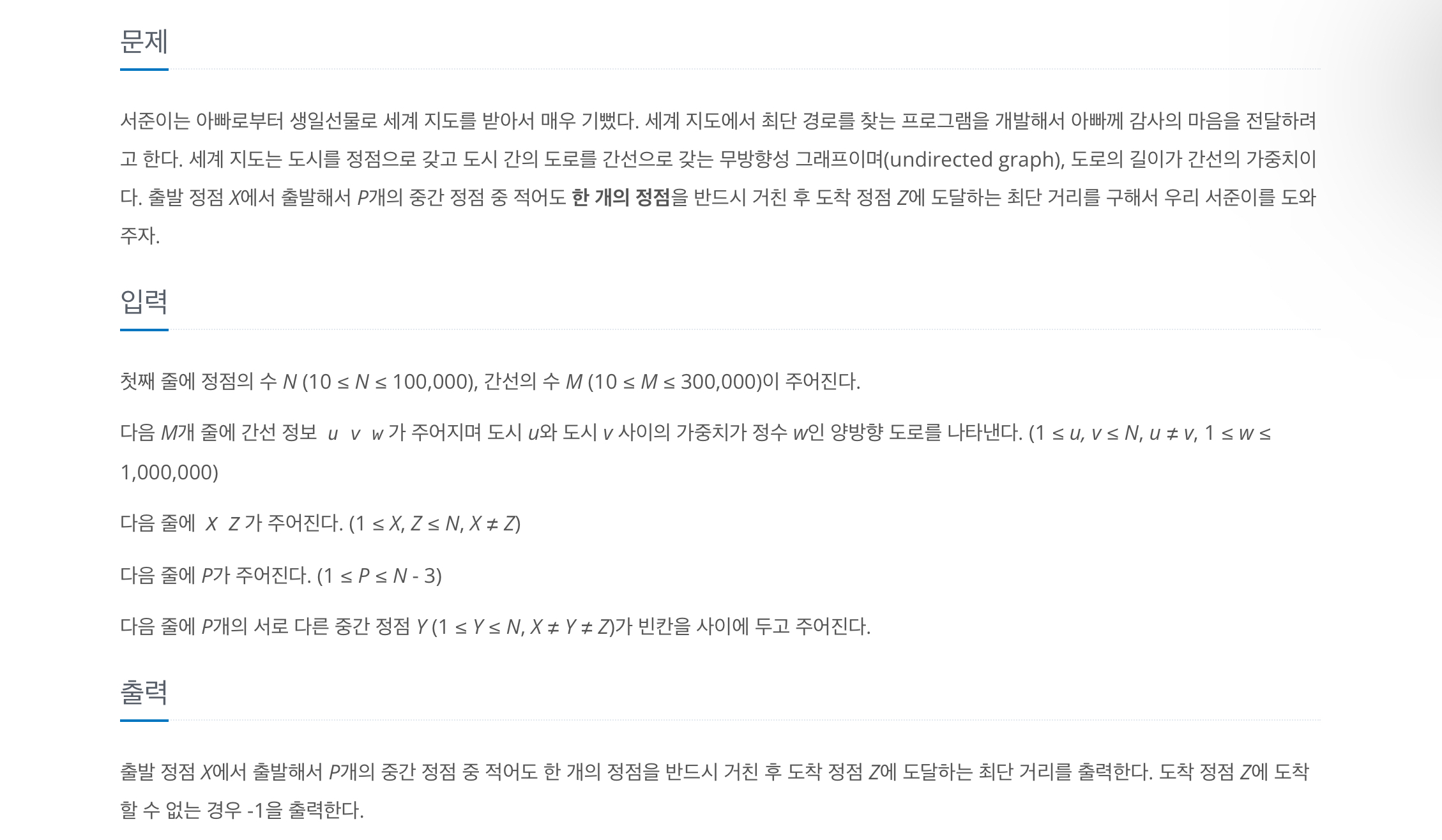 Dijstra(X); //X에서 들려할 지점까지 최소 거리