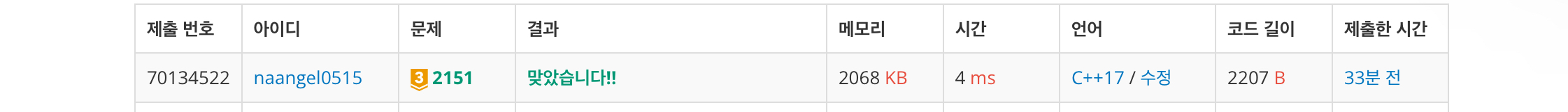 문제 링크입니다. https://www.acmicpc.net/problem/2151