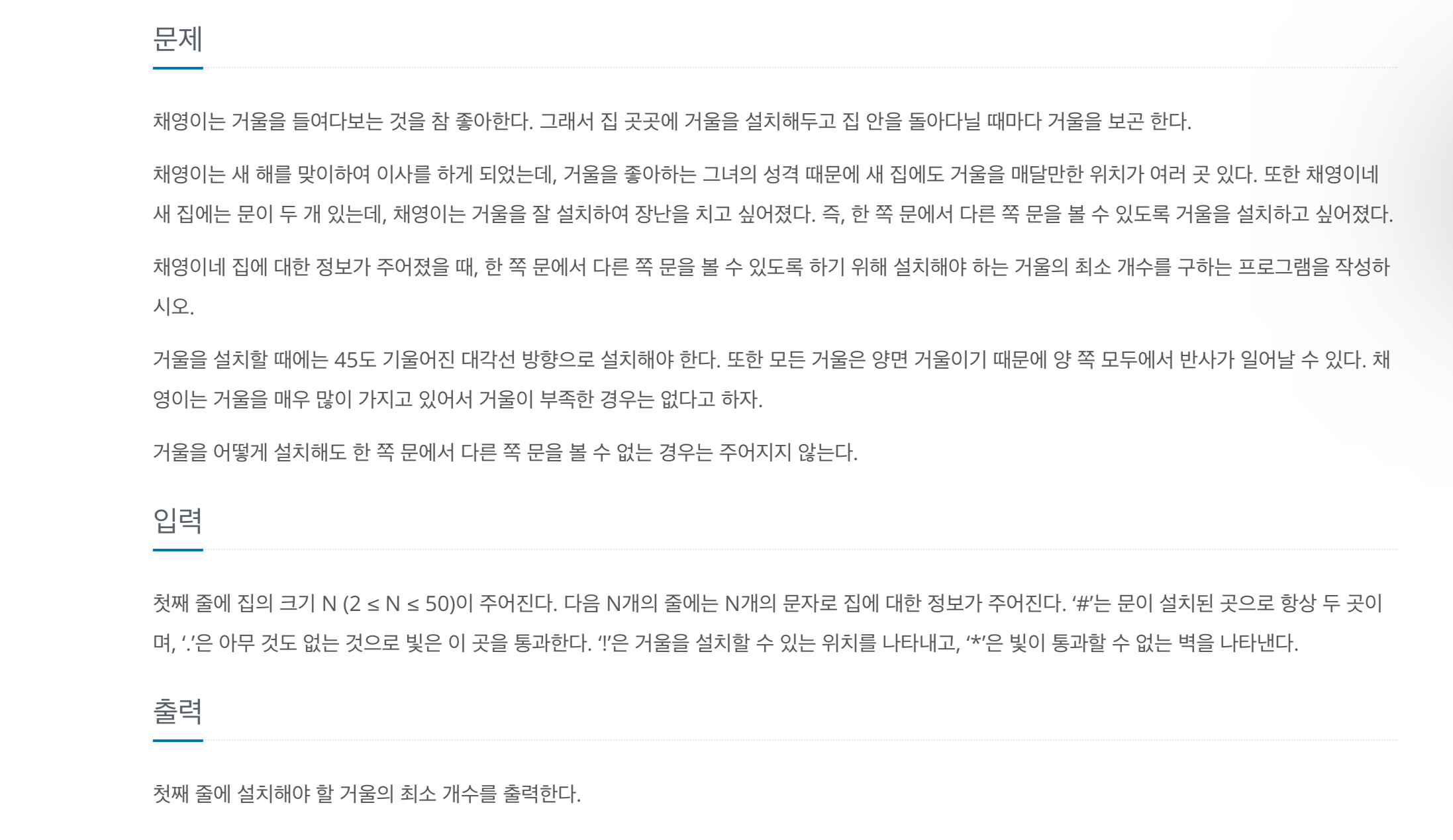 여기서는 거울의 설치 갯수를 물어보는 문제이니,