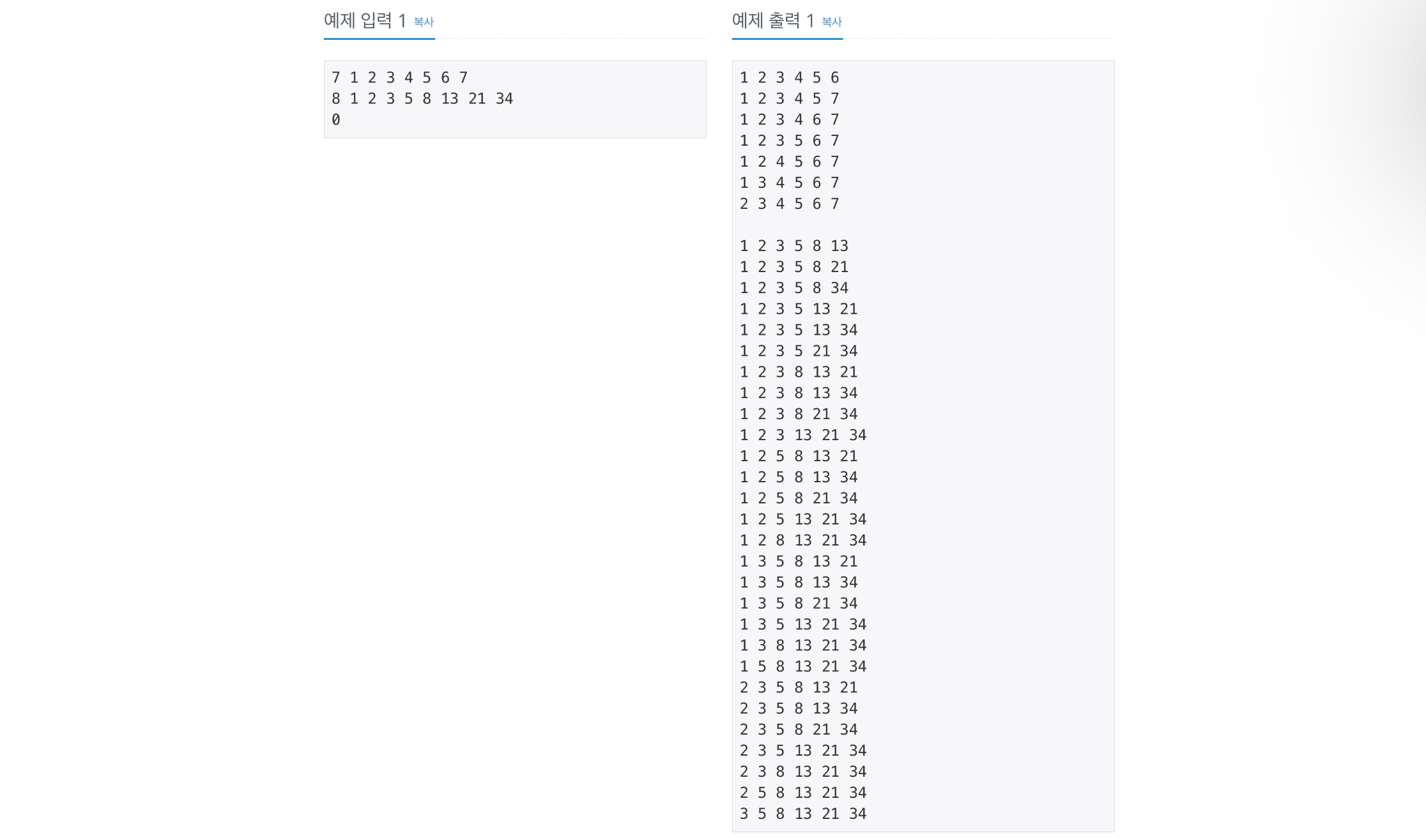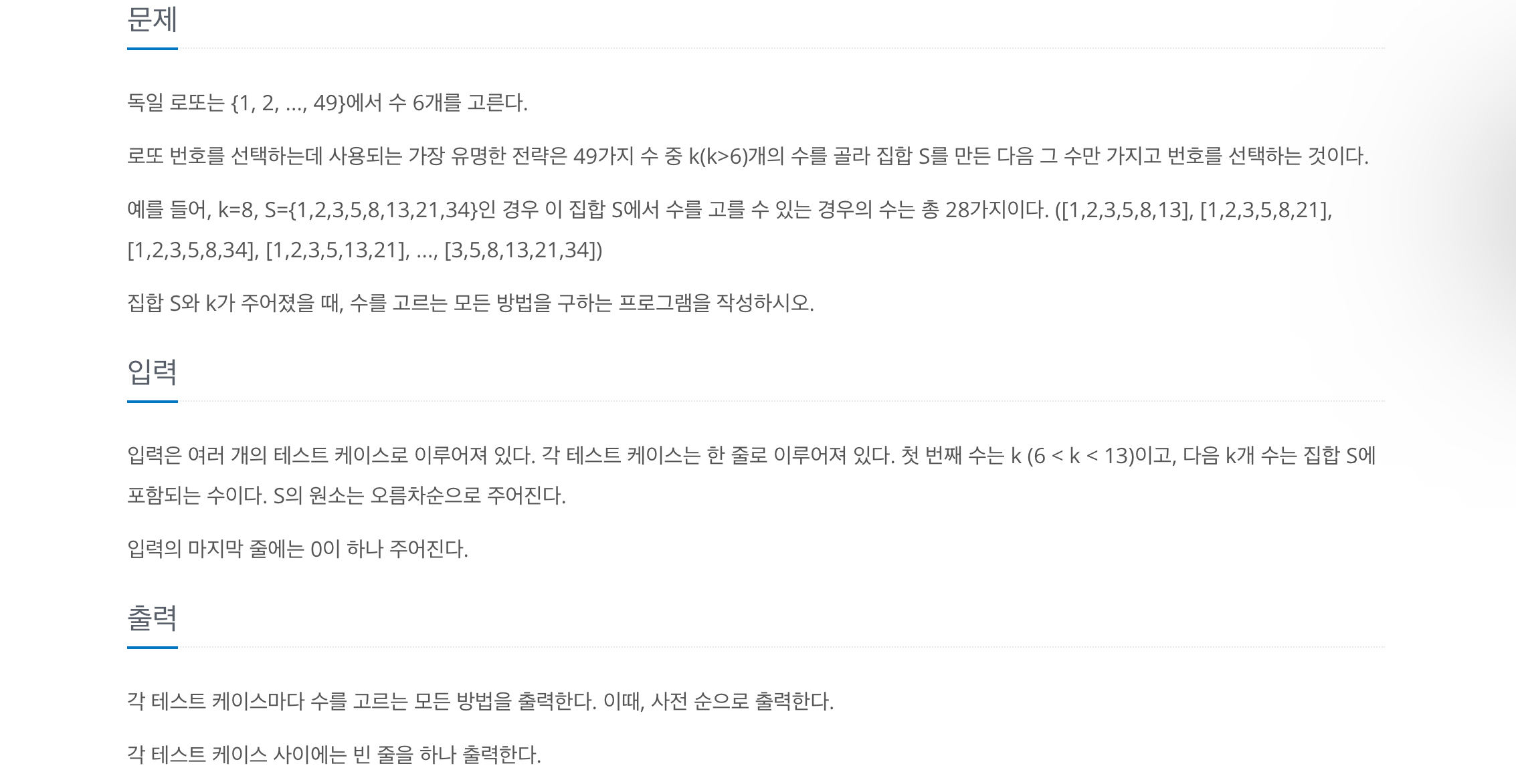 문제 링크입니다. https://www.acmicpc.net/problem/6603