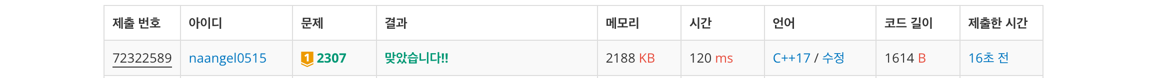 문제 링크입니다. https://www.acmicpc.net/problem/2307