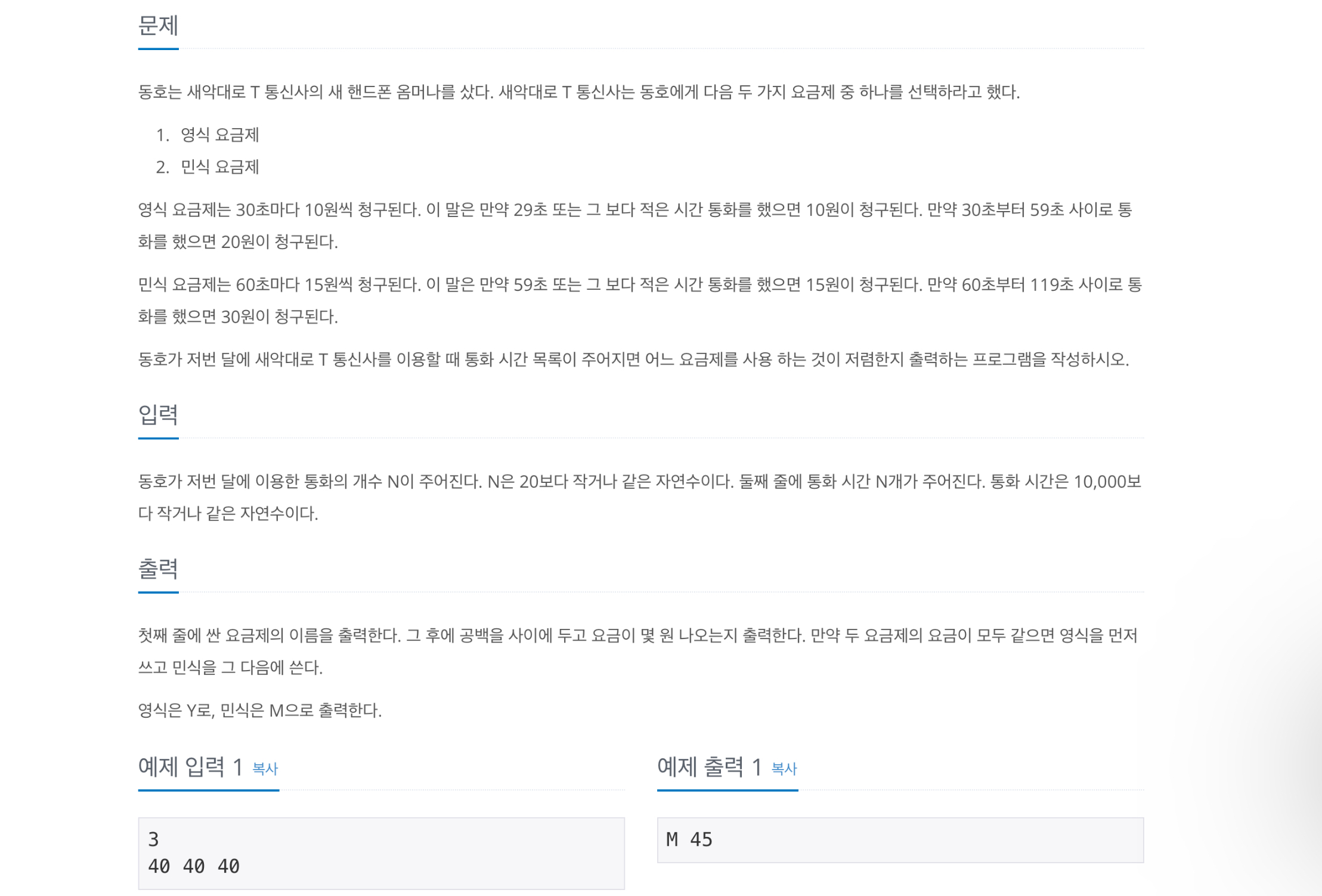 동호가 저번 달에 이용한 통화의 개수 N이 주어진다. N은 20보다 작거나 같은 자연수이다. 둘째 줄에 통화 시간 N개가 주어진다. 통화 시간은 10,000보다 작거나 같은 자연수이다.
